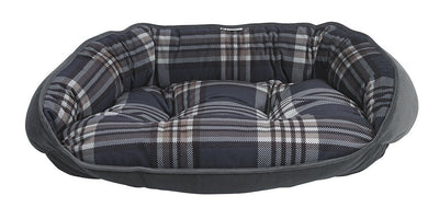 Bowsers Crescent Bed, Greystone Tartan Microvelvet
