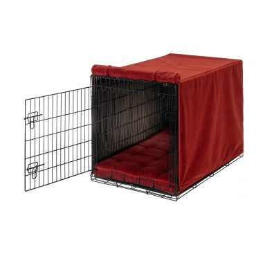 Luxury Crate Covers Your Wire Crate has Never Looked this Good ! This luxury cover not only gives your dog privacy and security, but adds a touch of class to ordinary looking wire crates. The finishing touch to our overwhelmingly popular luxury crate mattress. The most practical and stylish crate set on the market. Roll up front panels. Machine washable and dryable.
