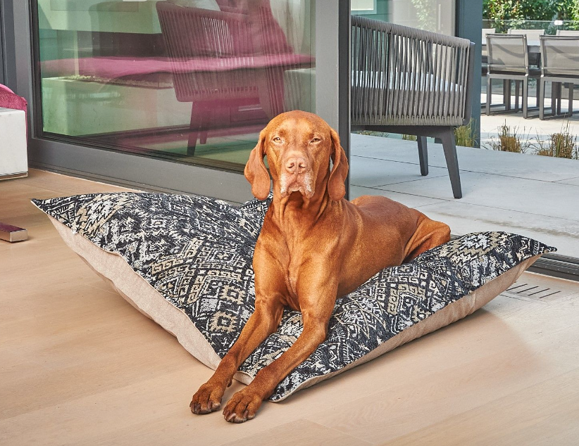 Modern simplistic design. Elegant European pinched edge detail. Generous sizing and overstuffed fill make this a great bed for dogs that like to stretch out. Kids will love it too as a great pillow to flop down and watch tv or play video games !